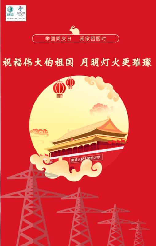 国家电网广大干部员工祝福伟大祖国繁荣昌盛,满怀信心豪情开创美好生活。为保障“双节”和国庆假期电力供应,国家电网很多员工坚守岗位,确保安全稳定运行,用心、用力、用情服务好各种用电需求,给节日增添亮色、增加温暖,让中秋月明之夜灯火更璀璨。在国庆、中秋来临之际,向祖国问候,向家人问候。祝愿祖国繁荣昌盛,祝福亲友阖家安康! 国家电网祝福伟大的祖国,月明灯火更璀璨!