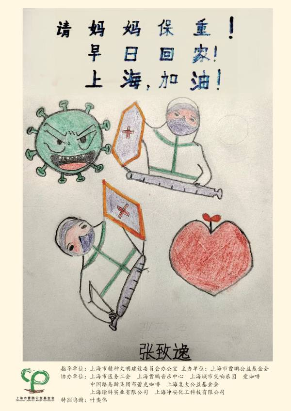 泛档(上海)信息技术有限责任公司的华浩先生连夜赶制五位孩子们的张贴画,寻找到煜樊快印王经理,一听是捐赠给白衣战士的,立即赶印。