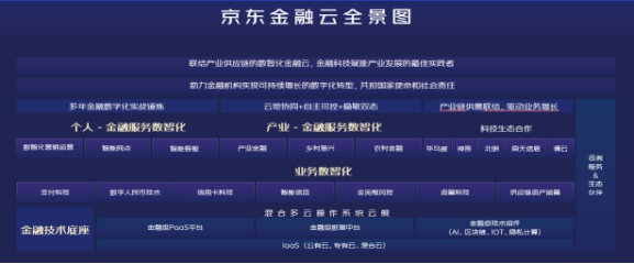 依托京东集团数智化社会供应链所联结的实体产业供应链,以及十年金融科技实战经验,京东金融云致力于为金融机构实现可持续增长的数智化服务,成为“联结产业供应链的数智化金融云”。论坛上宋可心对外发布了“京东金融云全景图”,全面呈现从金融技术底座,到助力金融机构实现业务数智化、金融服务数智化的整套解决方案。