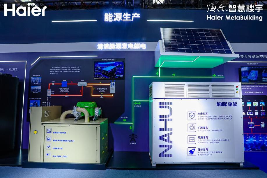 正如本次展会上,海尔热泵方案在实现机组运行节能基础之上,与光驱储能“零碳”科技、热能回收发电“负碳”科技相结合,依托海尔“楼宇大脑”智慧能源管理平台,实现建筑整体的智慧节能运营。具体来说,海尔智慧楼宇通过磁气悬浮ORC发电机组将工业废热进行回收,并转化成电能,供给建筑内部热泵系统和其他日常能源使用。同时,借助光驱储能技术将这些能量优先储存起来,当超过建筑本身能源用量时,还可通过管理系统并网出售,节省楼宇能源成本的同时也节省了运营成本,助力建筑绿色发展。