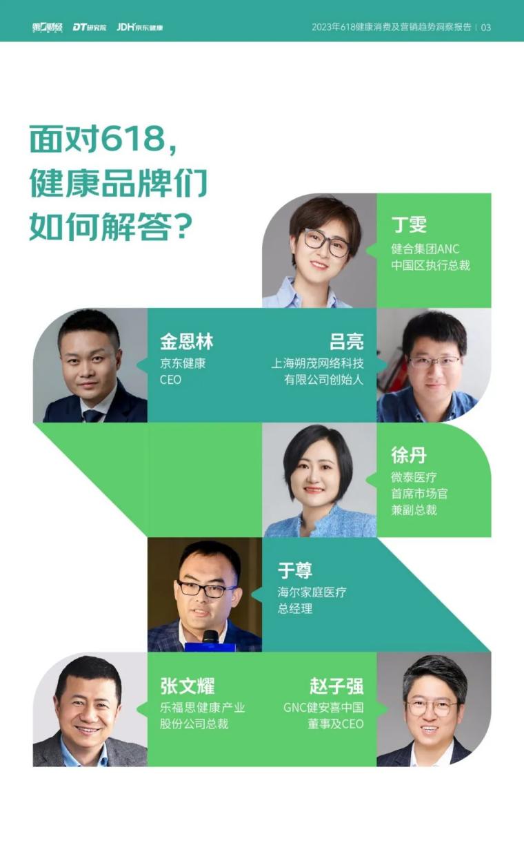 近日,京东健康联合第一财经发布了《2023年618健康消费及营销趋势洞察报告》(以下简称:报告),通过与来自健合集团、上海朔茂网络科技、微泰医疗、海尔家庭医疗、乐福思健康、GNC健安喜的品牌负责人展开对谈,围绕健康消费趋势、健康品牌与消费者沟通的痛点、未来健康营销如何发展等话题进行了深入的阐述。