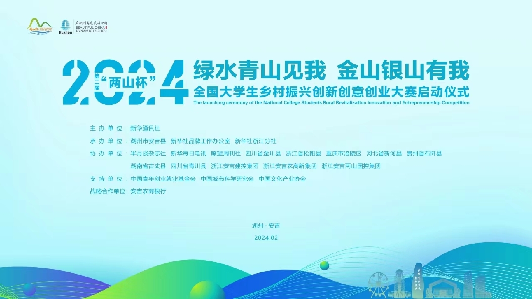 为了在全社会汇聚更强大的青年人才力量推进乡村振兴系统工程,“绿水青山就是金山银山”理念诞生地浙江省湖州市安吉县将于2月28日启动第二届“两山杯”全国大学生乡村振兴创新创意创业大赛。