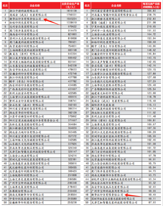 9月18日,2025印刷包装产业经济论坛暨全国印刷经理人年会现场发布了“2025中国印刷包装企业100强”排行榜,新华社印务有限责任公司再次入选。其中,主要经济效益指标排行显示,“全员劳动生产值”排名第3位,“每百万元资产实现的销售收入”排名第48位。