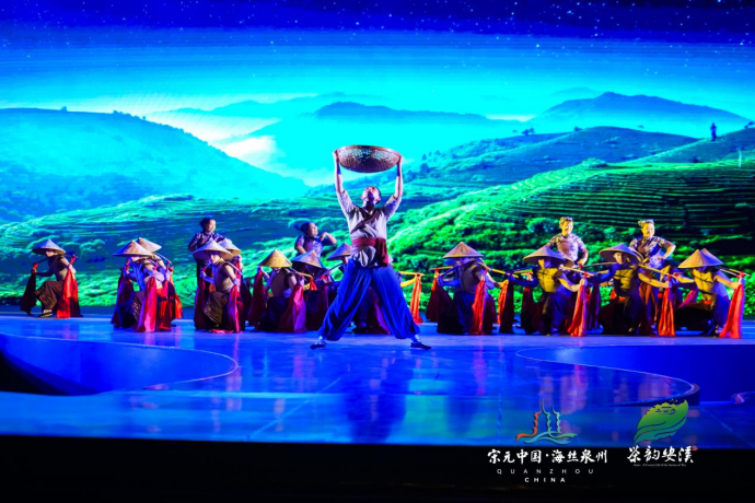 安溪茶文化的深厚底蕴与蓬勃活力。而这份文化魅力,不仅藏在茶香里,更藏在鲜活的艺术演绎中。舞台剧《铁观音》中《喊山》片段演绎率先登场,以生动的艺术形式展现铁观音茶叶背后的历史故事。随即,泉州各大茶庄园秋茶开采画面映入眼帘:采茶人踏晨露、提新芽,层层茶山间透出丰收的气息,生动诠释“春水秋香”的传统佳话。