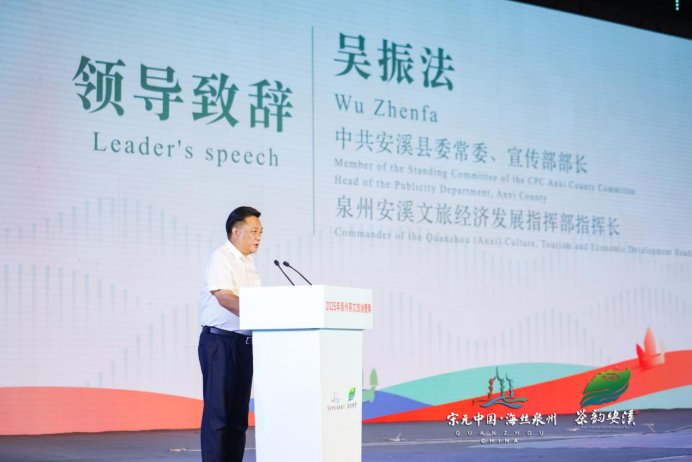 安溪,作为铁观音的发源地,始终用“一片叶子富一方百姓”的生动实践,诠释着“茶和天下”的深刻内涵。中共安溪县委常委、宣传部部长,泉州安溪文旅经济发展指挥部指挥长 吴振法在致辞表示,安溪茶,从来不止是滋养民生的“金叶子”,更是赓续文化的“活化石”。从宋元时期海上丝绸之路的重要商品,到如今香飘“一带一路”的文化符号;从遵循传统的精细化管理,到数字赋能的智能化加工;从品质为本做好一泡茶叶,到全链发展做优一个生态——安溪茶产业的每一步前行,都是“守正”与“创新”的深度交响。今晚的启动仪式,不只是一场茶的盛会,更是文化与山水相拥、传统与现代碰撞的盛宴,是安溪向世界递出的一张“茶文旅邀请函”。