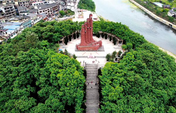 位于茅台镇赤水河畔的茅台渡口纪念碑。