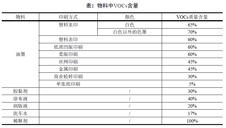 上海市印刷业VOCs排放量计算方法规定如下: