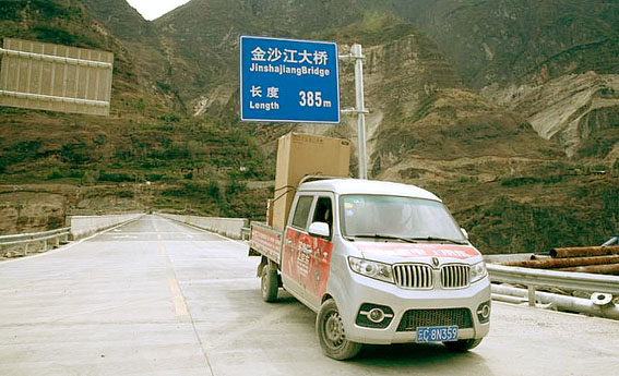 3月16日早上,在川滇两省交界的大山里,刘平来开着送货车穿过一座385米长的“金沙江大桥”(四川人叫布托桥,云南人叫鹦哥桥),车里装着送往桥对面的家电,这是大桥通行后刘平来第10次来这里送货。意义特殊,为此他还在桥头特意停车拍照留念。