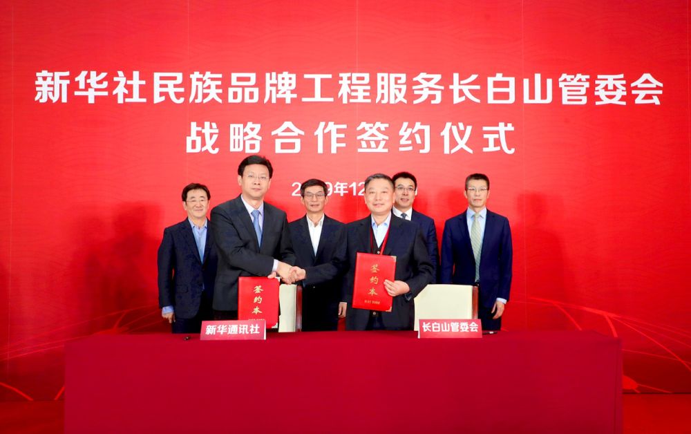 12月16日,新华社民族品牌工程服务长白山管委会战略合作签约仪式在京举行。长白山是第一个与新华社民族品牌工程开展全面合作的文旅品牌。新华社下属21家服务机构将围绕长白山品牌建设和产业发展与长白山管理委员会进行全面合作。