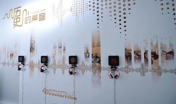 时光隧道里,斑驳的图片记录着那些并不久远的旧时光; “磨剪子嘞,戗菜刀”……“历史的声音”环节,你戴上耳机,市井的吆喝声、儿时的广告声像一把钥匙打开记忆之门;从“凭票供应”到“卡行天下”,再到“刷脸支付”,支付方式正变得越来越便捷,精心设计的粮票墙激发了不少60后,70后甚至80后对过往的回忆;时光邮箱前,你可以写下属于你的消费意愿投入邮箱,给未来一份期许……